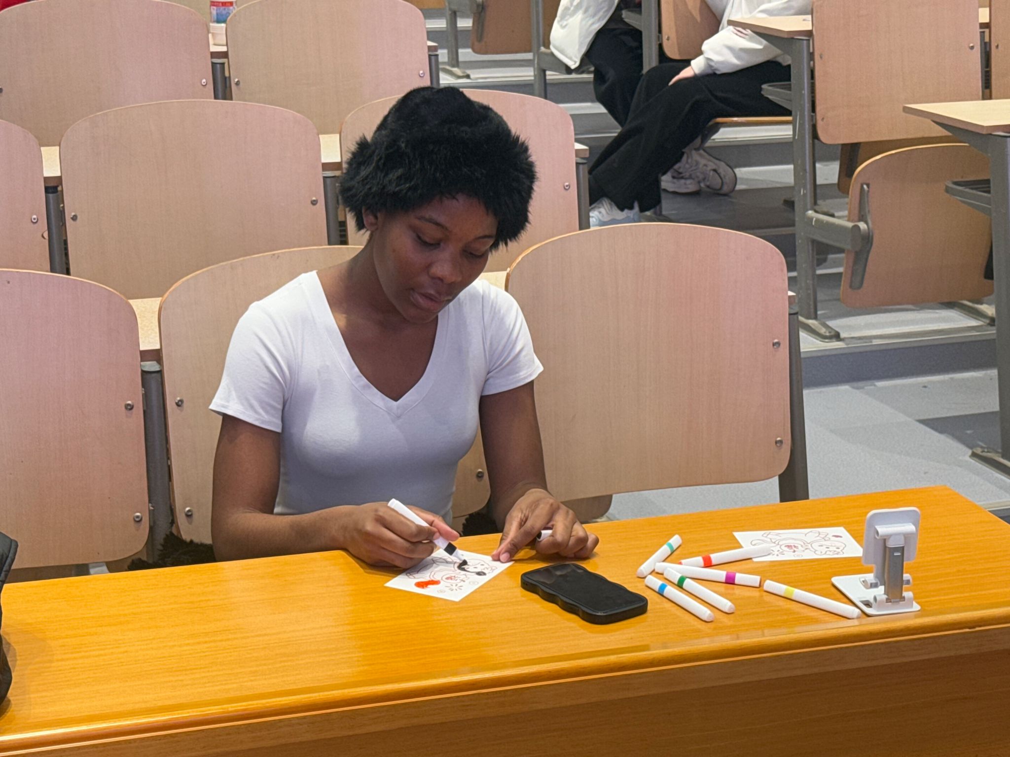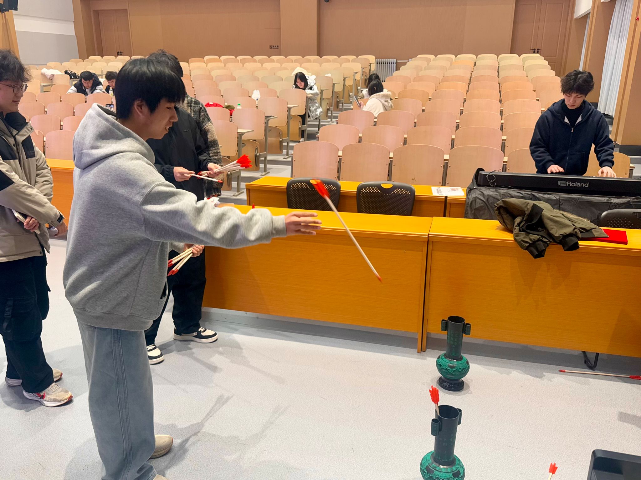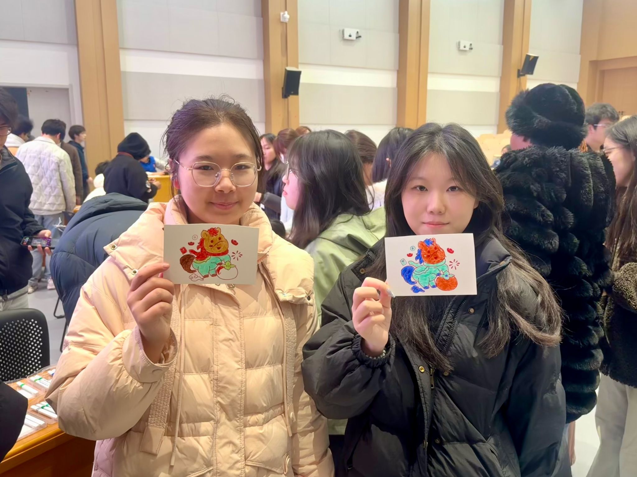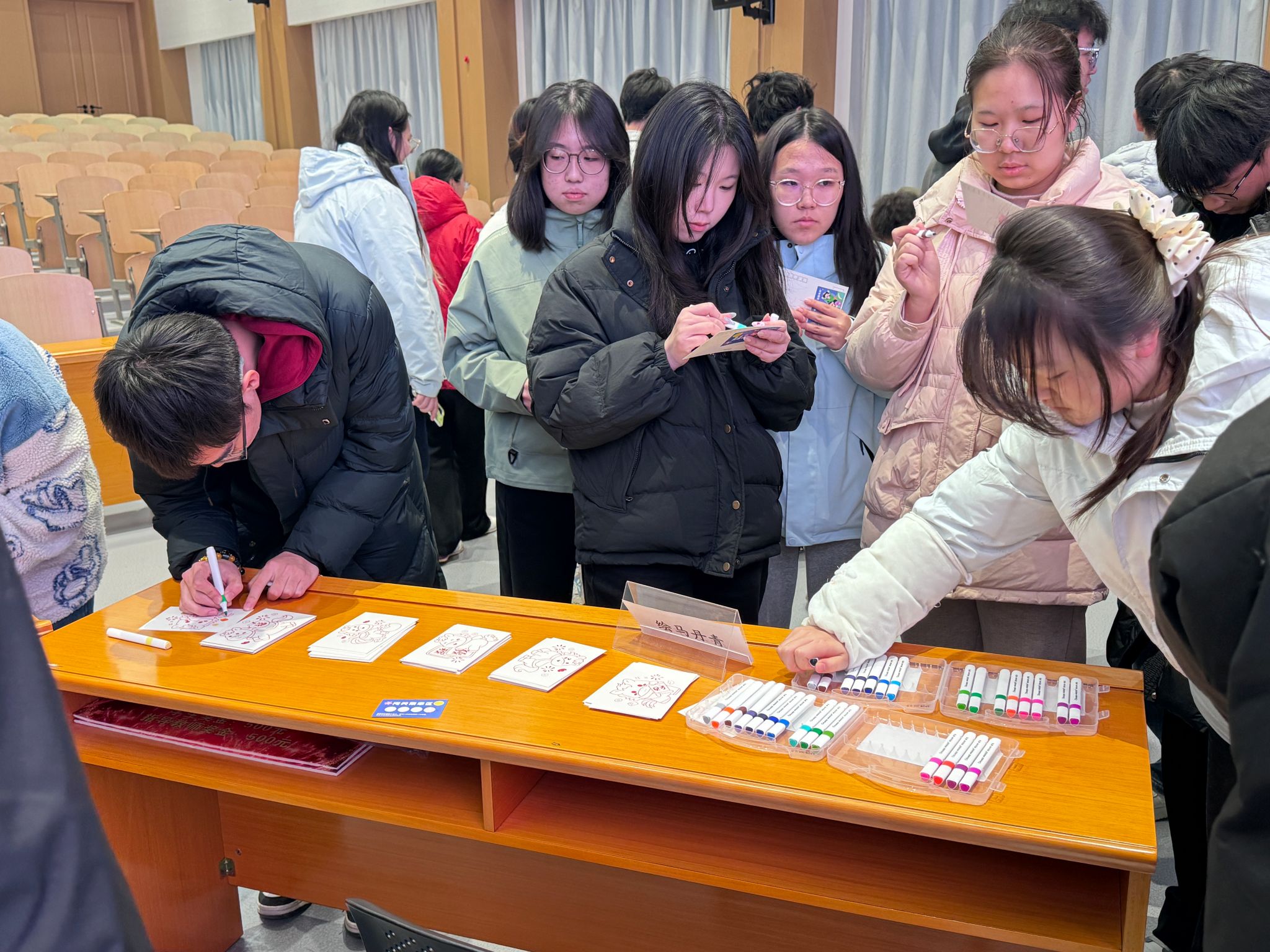 随后的游园环节中,四大趣味游戏区同步开放:创意涂色绘马丹青、巧手编织珠联璧合、妙语猜谜马踏飞花、古礼投壶一箭倾心,吸引了同学们踊跃参与。大家穿梭于各摊位,通过挑战集章兑换奖品,现场气氛热烈,欢声笑语不断。